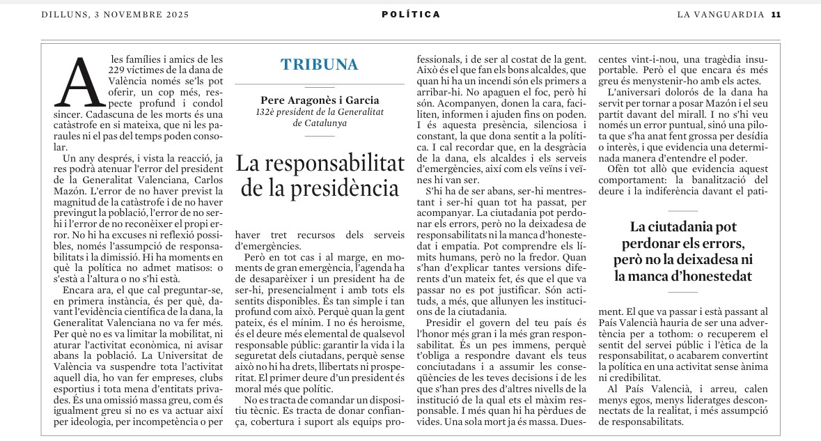 El president Pere Aragonès i Garcia, entrevistat per Gemma Nierga al Cafè d’Idees de RTVE Catalunya, ha explicat la seva decisió de renunciar al sou d’expresident. També ha valorat l’actualitat política, marcada pel genocidi a Gaza i la detenció dels integrants de la flotilla Global Summit. El president s’ha posicionat sobre aquesta qüestió i ha criticat contundentment a l’extrema dreta.