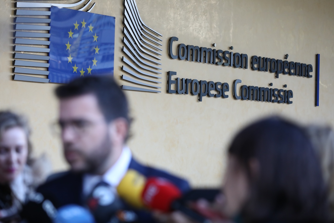 20/10/2022 El president Pere Aragonès atenent als mitjans de comunicació després de reunir-se amb comissaris europeus (Brussel·les)