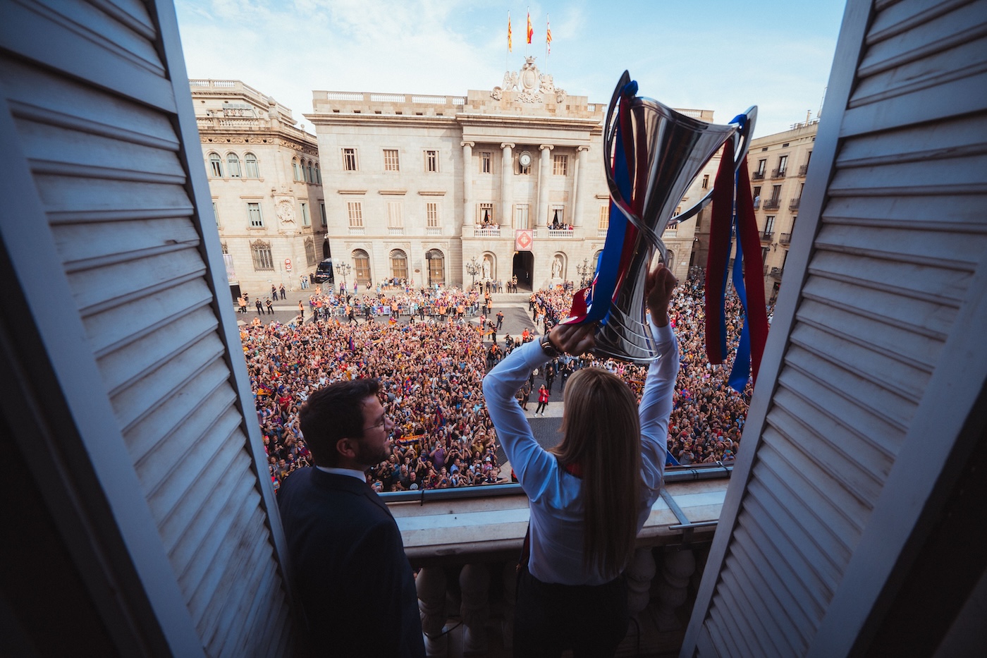 4/06/2023 El president Pere Aragonès rep al Palau de la Generalitat a les jugadores del Barça femení després de proclamar-se campiones d'Europa